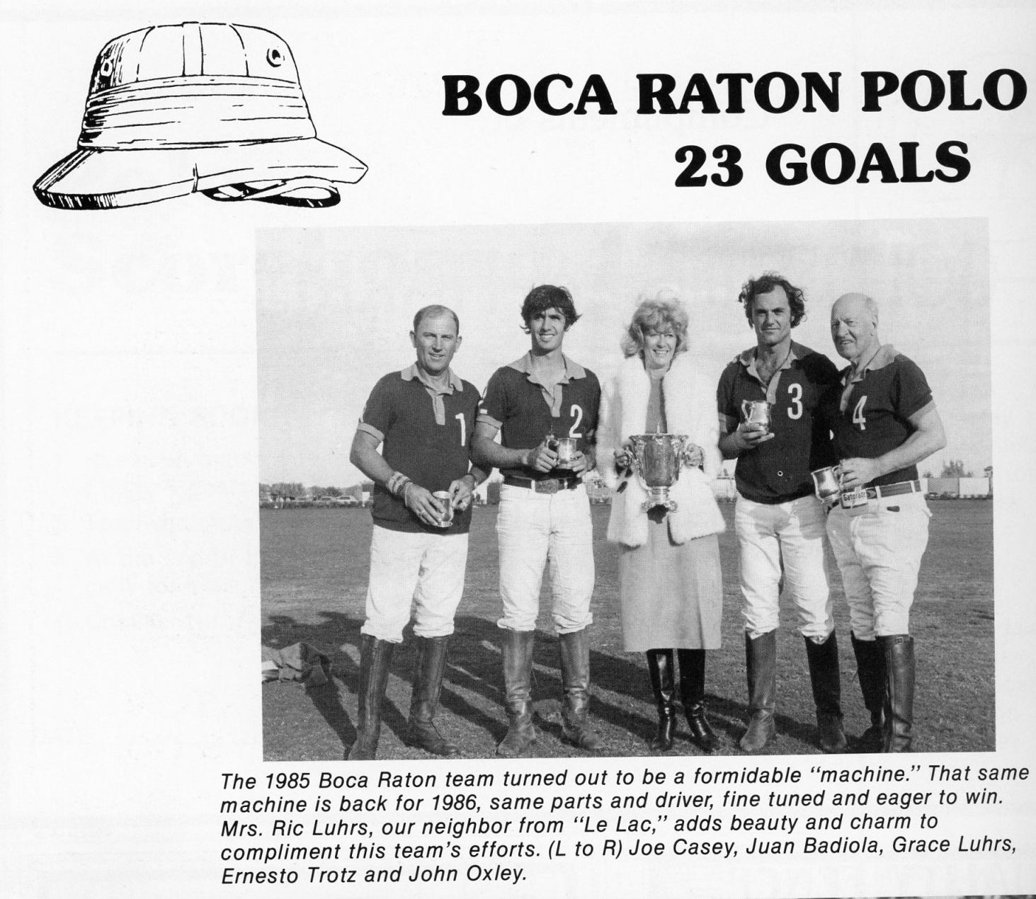 Joe Casey Sr. helped set the standard for large-scale professional polo management. In the 1960s, while working in Tulsa for John T. Oxley, he oversaw the horses for a high-goal team, managed the breeding operation, and played on Oxley’s teams, demonstrating both exceptional skill and keen horsemanship. Casey was also among the first Americans to travel to Argentina in search of top-quality horses, a practice that soon became essential to high-goal polo in the United States. Known for generously sharing his knowledge, he guided numerous young players. On the field, Casey’s achievements include winning the 1970 British Gold Cup with Boca Raton, the 1966 12-goal with Tulsa, and the 1981 Bronze Trophy and Inter-Circuit titles, also with Tulsa.