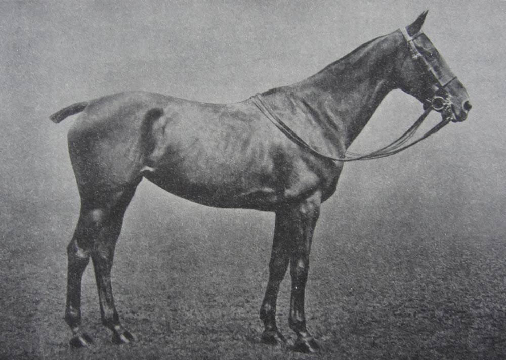 Considered to be one of the greatest polo mounts of her day, the stunning bay mare Royal Diamond was part of the superior string of ponies of Hall of Famer Harry Payne Whitney, and one of his most treasured. The resilient mare had a long and illustrious career playing for him and also as a mount for the hard-riding Tommy Hitchcock, another Hall of Fame great. She played 2 chukkers under him in the International matches of 1921.