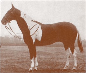 Tobiana was a celebrated Argentine-bred piebald (black & white pinto) gelding, owned and played by the great 10-goaler, Tommy Hitchcock, Jr. In 1926, another legendary 10-goaler, Lewis Lacey, selected Tobiana for Hitchcock, finding him at a race track in Argentina. Lacey bought him, schooled him, and sent him north. The piebald pony had power and extreme speed, and was played by Hitchcock in many national and international matches, becoming one of the best known ponies of the era.